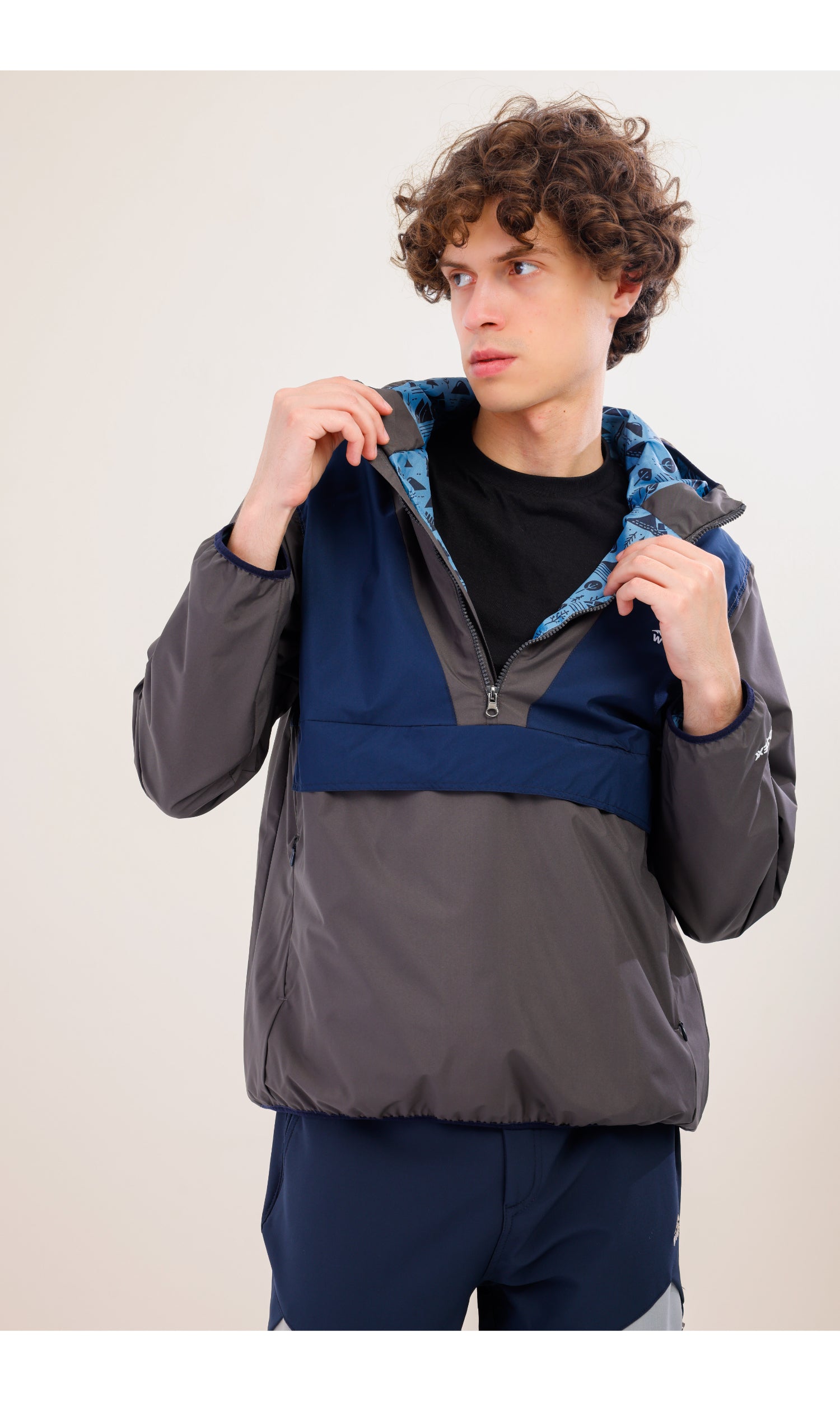 Flow Flex Ultralight Waterproof Hoodie – Gray / Navy Blue (Deep Horizons), Design That Turns Into a Bag