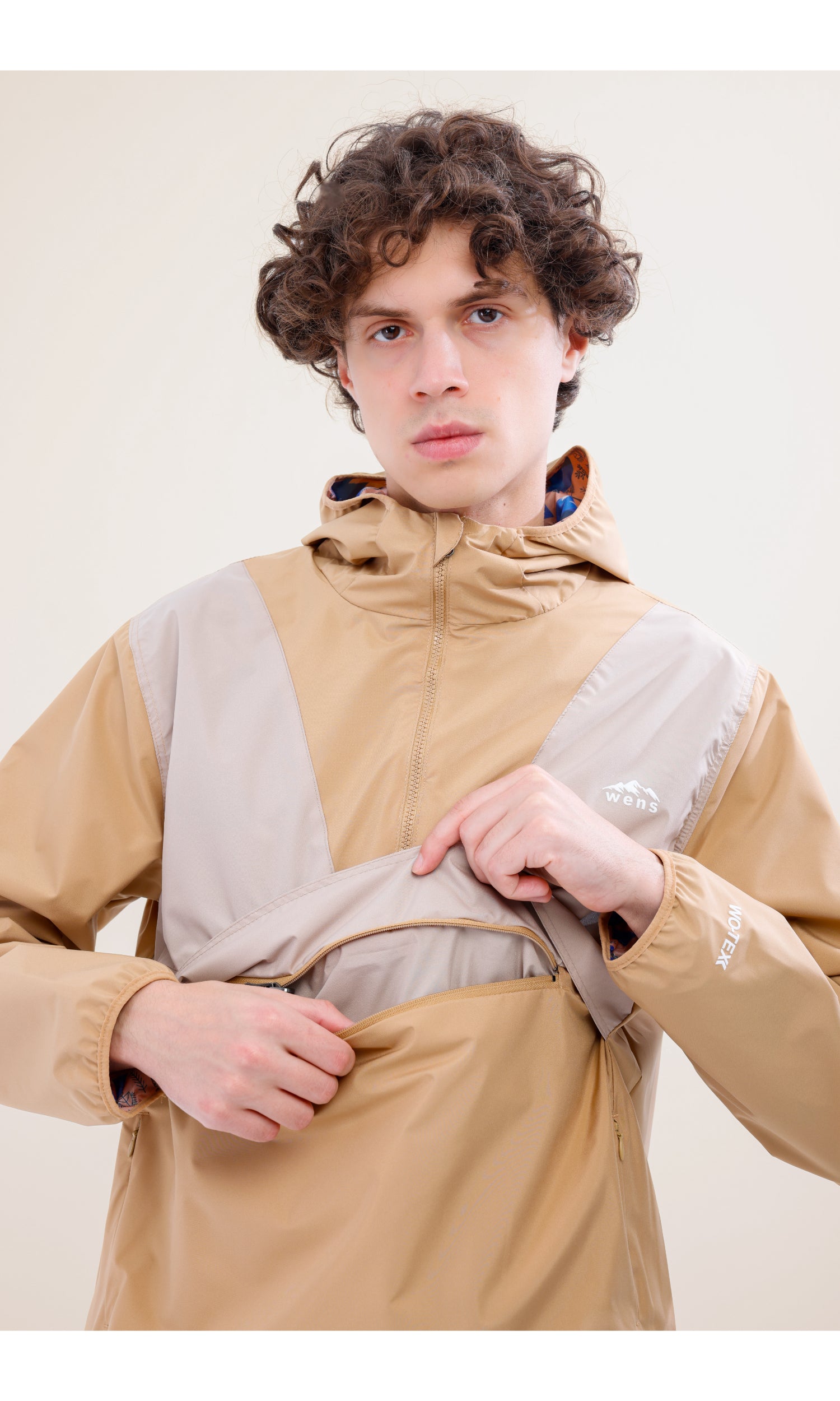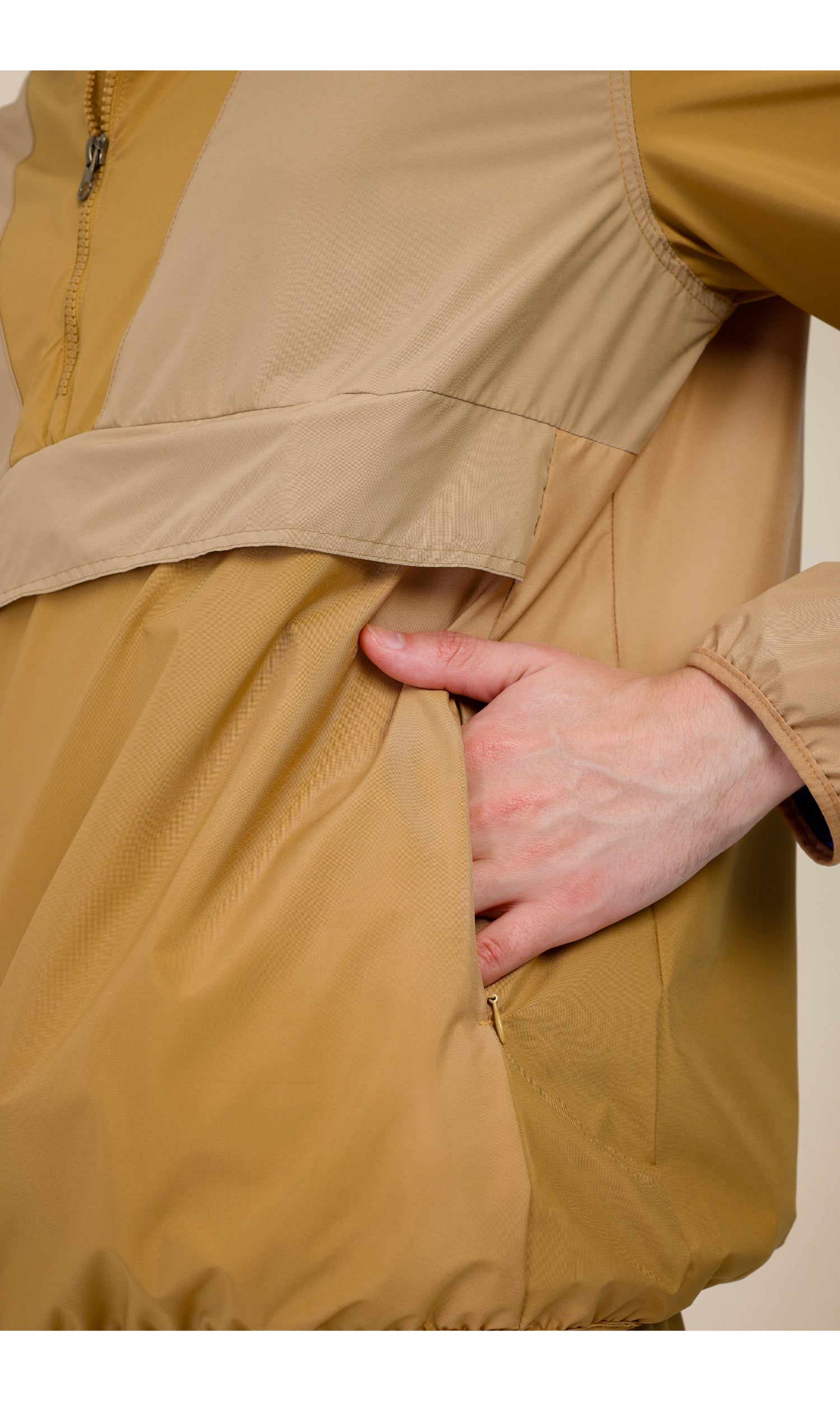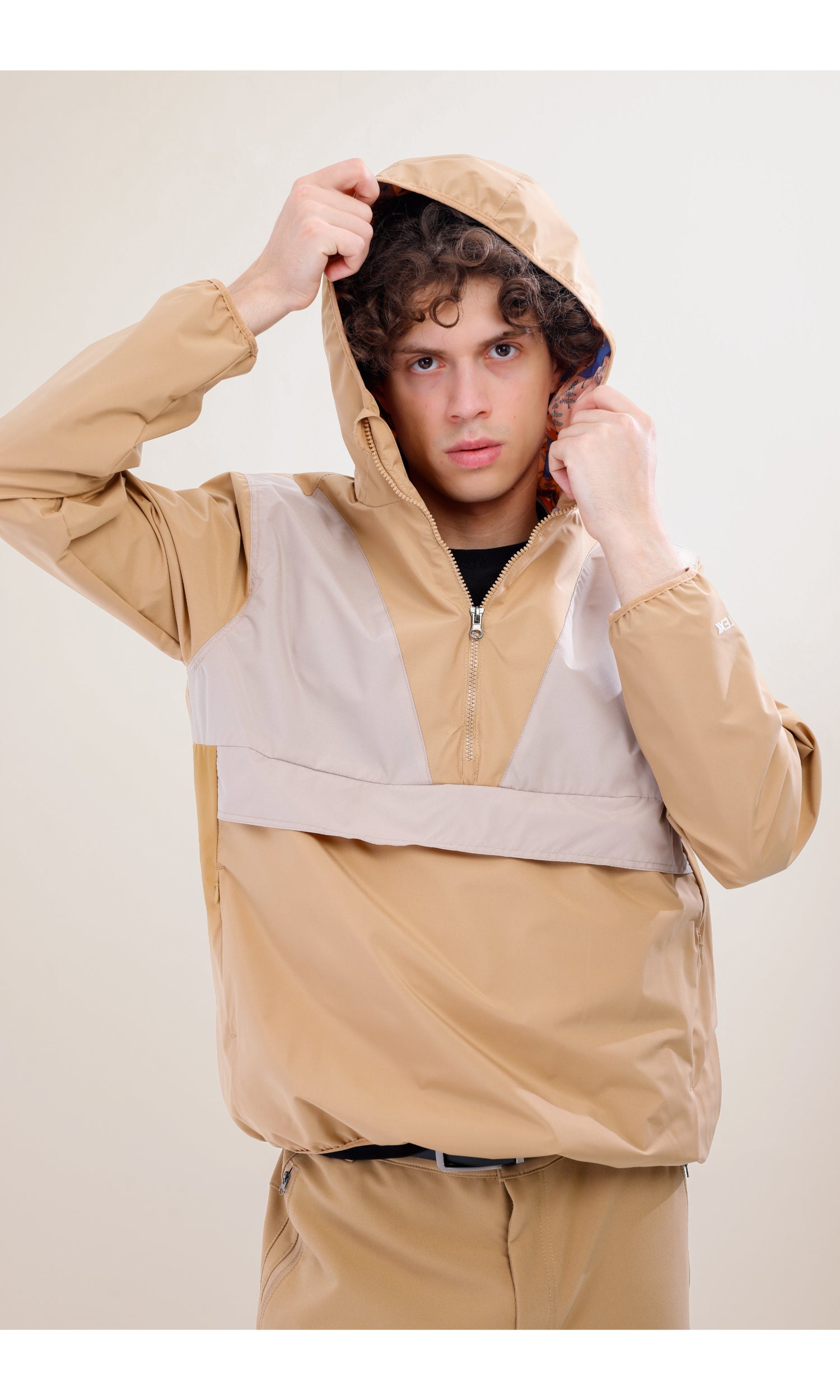 Flow Flex Ultra Hafif Su Geçirmez Hoodie – Bej/Krem (Kum Tepeleri), Çantaya Dönüşen Tasarım