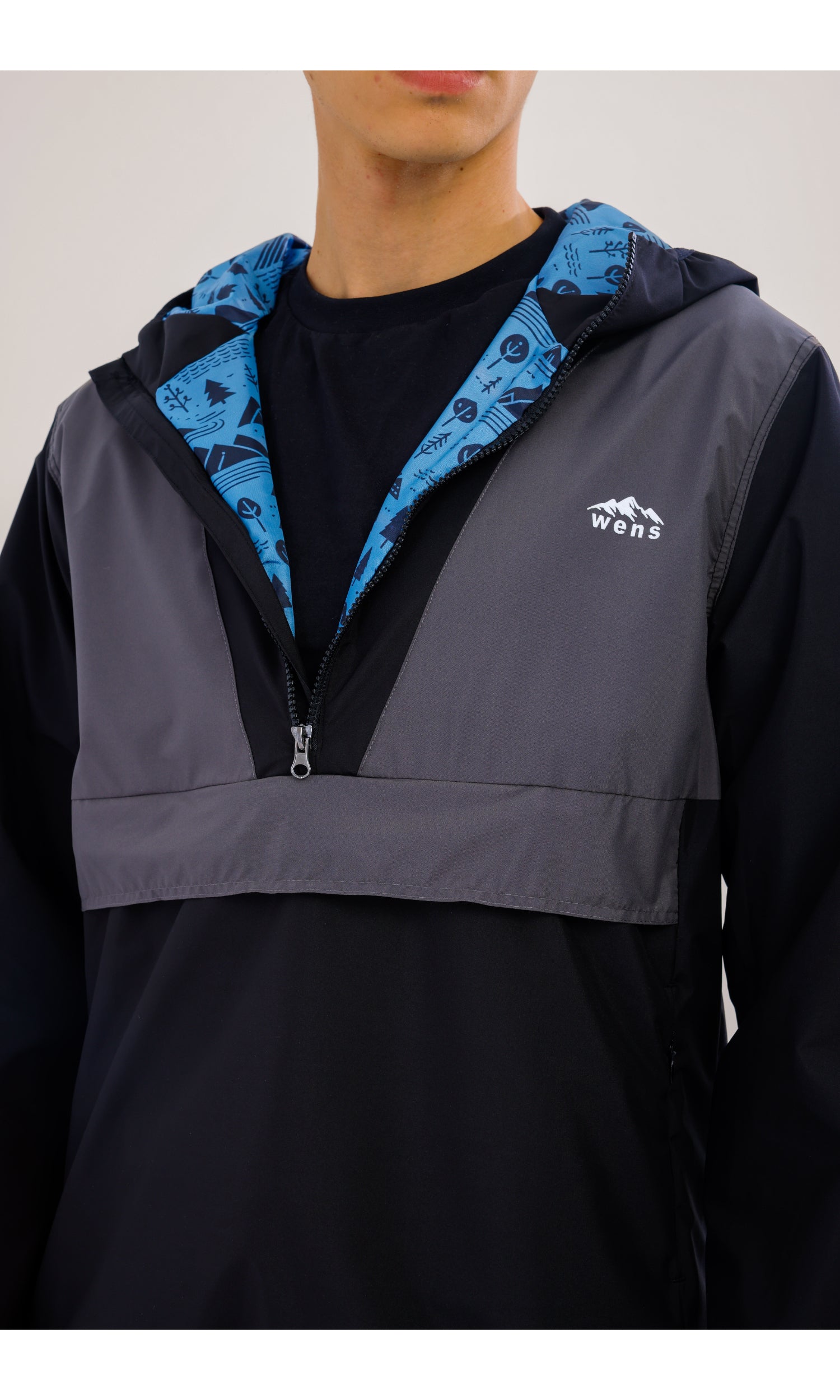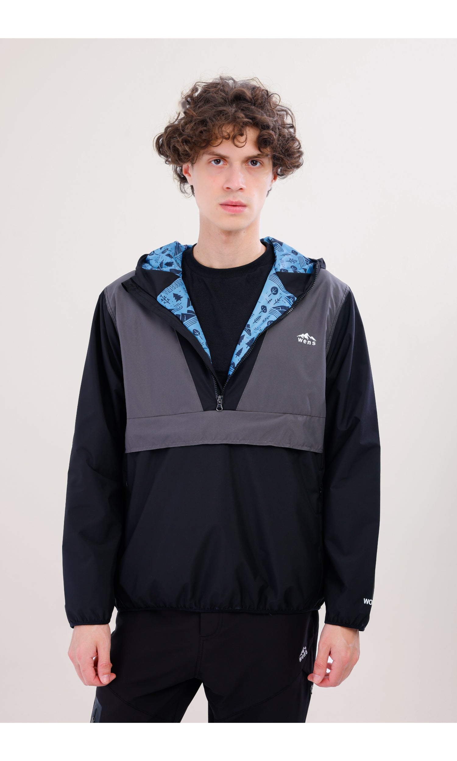 Flow Flex Ultra Hafif Su Geçirmez Hoodie – Siyah/Gri (Gece ve Duman), Çantaya Dönüşen Tasarım